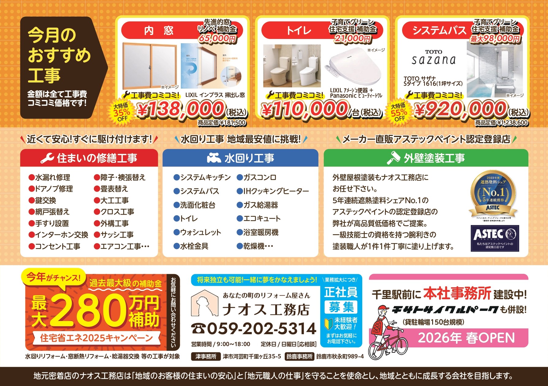 「住まいのことは すべて ナオス工務店にお任せ!」